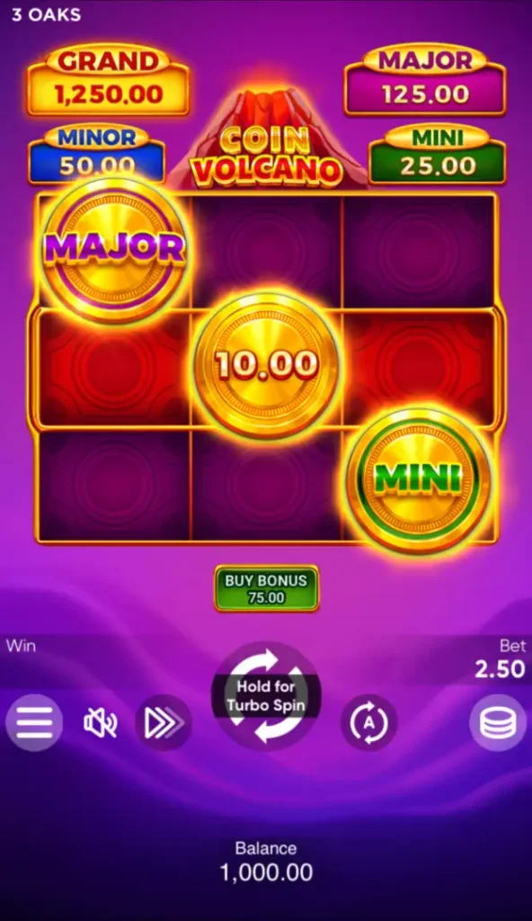 The Ultra Bonus Game with guaranteed Volcano Multipliers can be purchased for 75x your bet, while standard Hold and Win costs 30x. These buy options accelerate access to features but eliminate the organic gameplay progression and increase variance exposure.